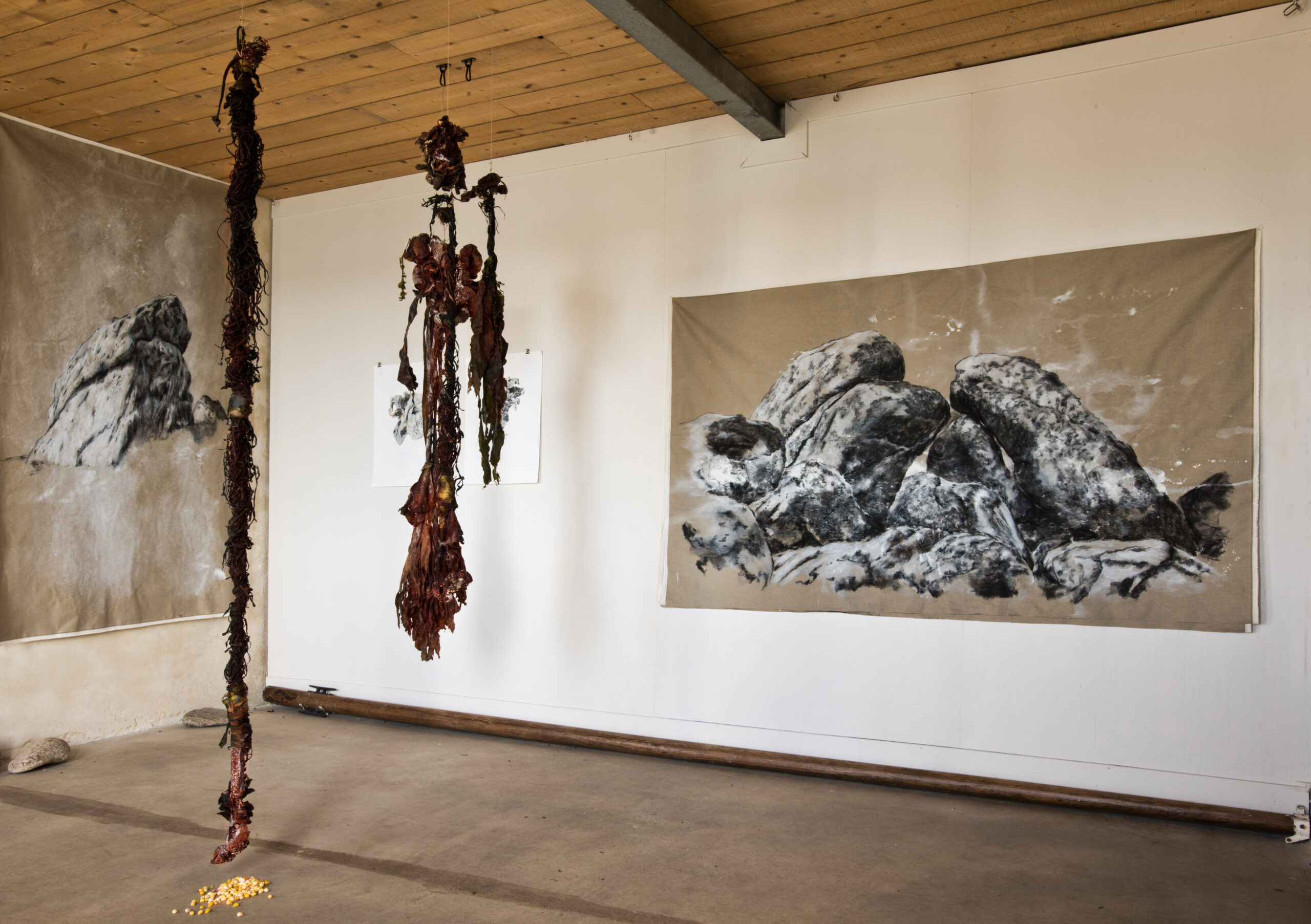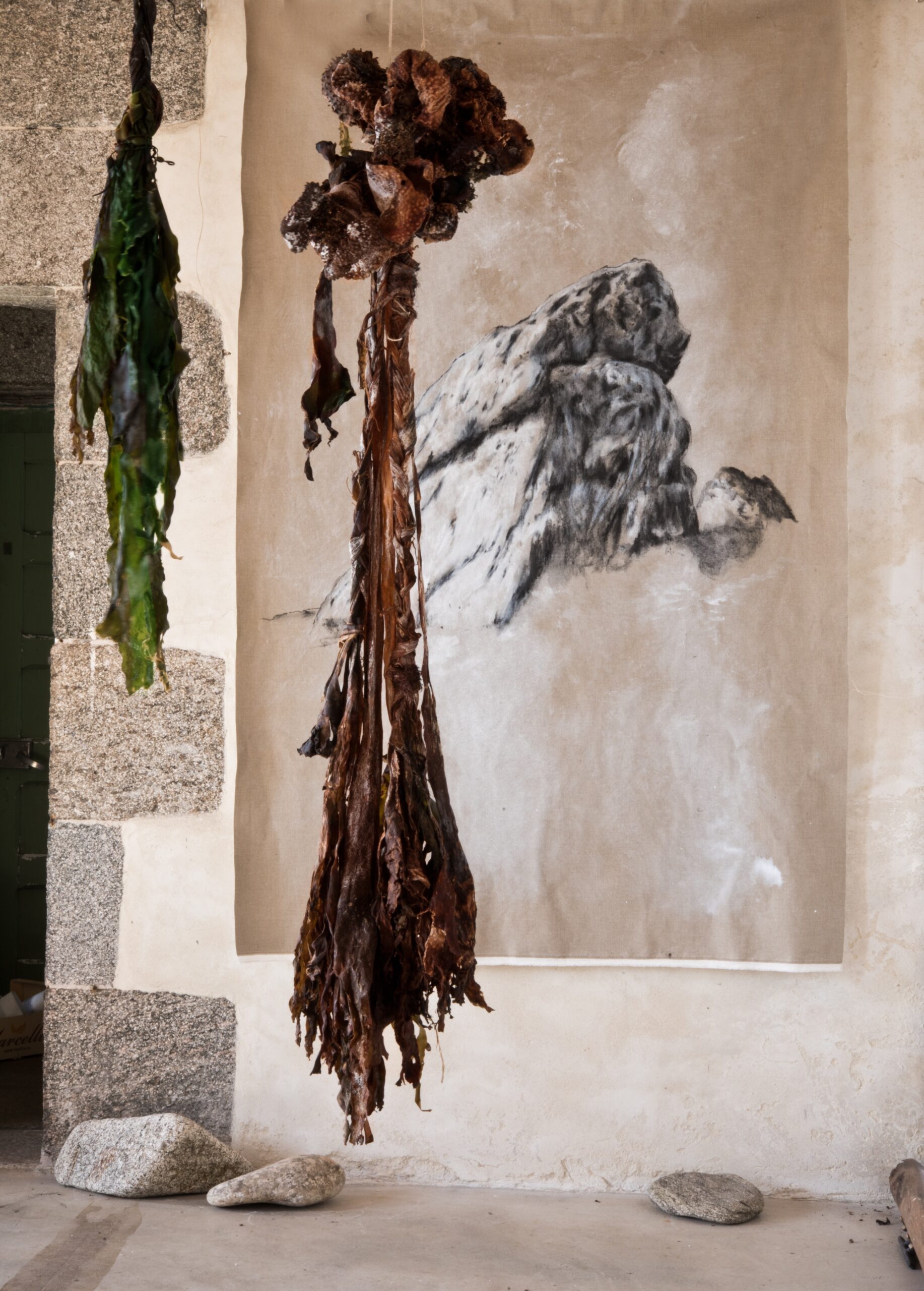 J’ai réalisé une semaine de résidence au phare de l’île Wrac’h avec l’association IPPA, où j’ai pu expérimenter une nouvelle matière, l’algue, et créer des formes artistiques inspirées de la déesse celte locale, « la Wrac’h ».