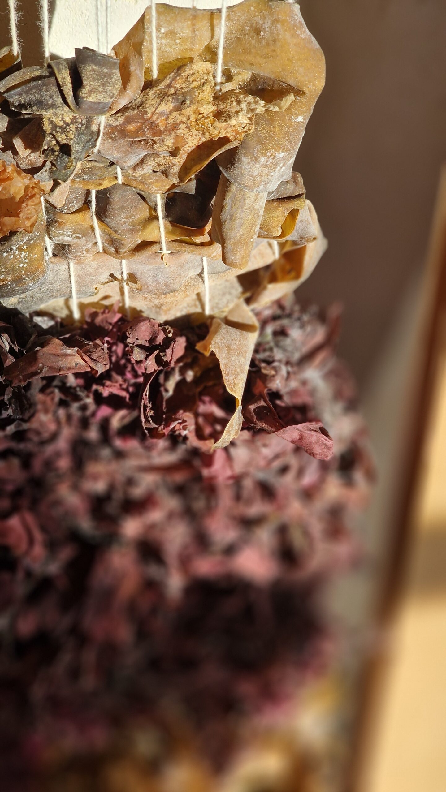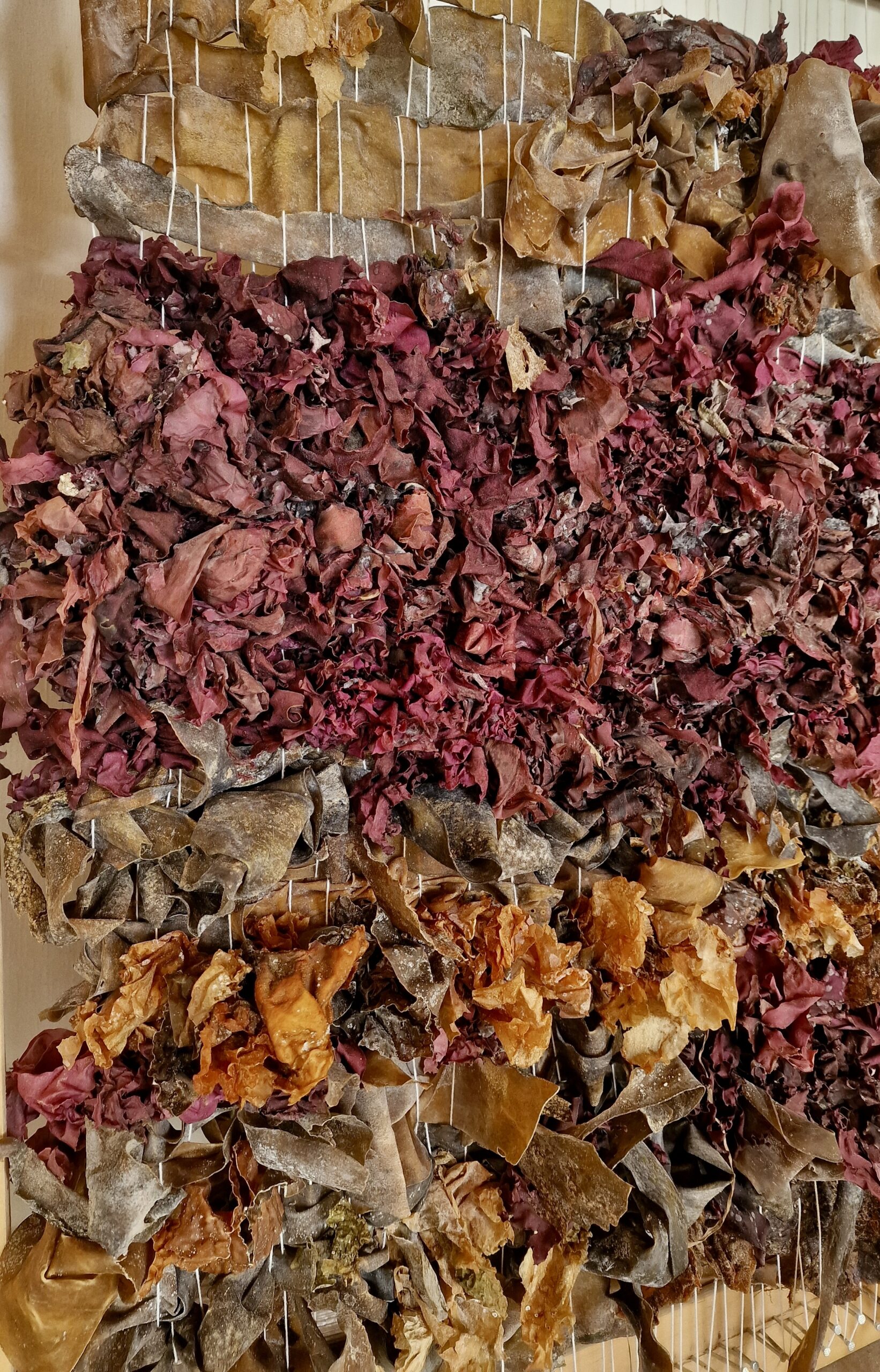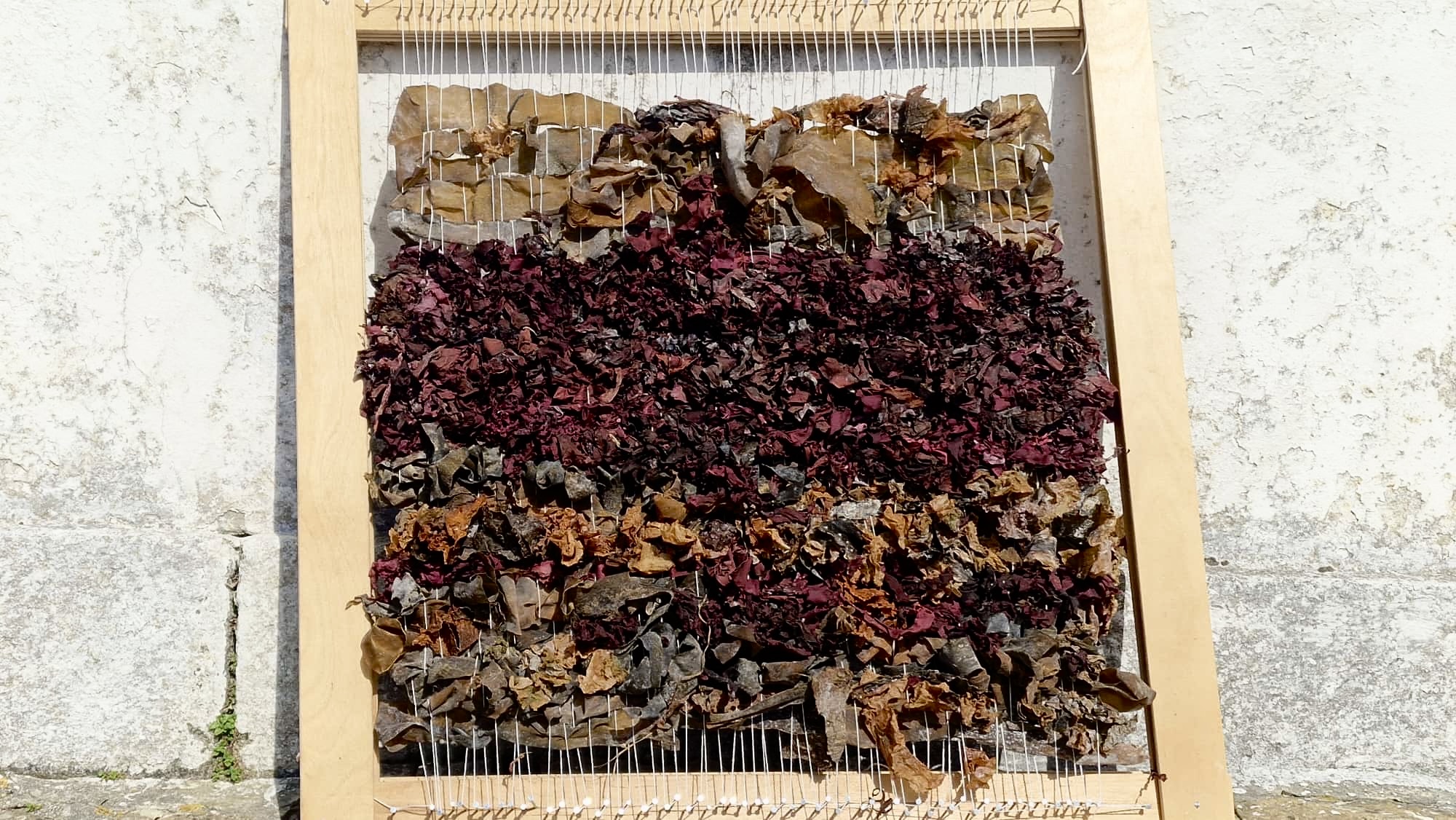 J’ai moi-même utilisé certaines des algues récoltées dans la baie de l’île Wrac’h, offertes par ces belles rencontres, dans un geste de partage qui relie le savoir-faire marin aux gestes du fil.