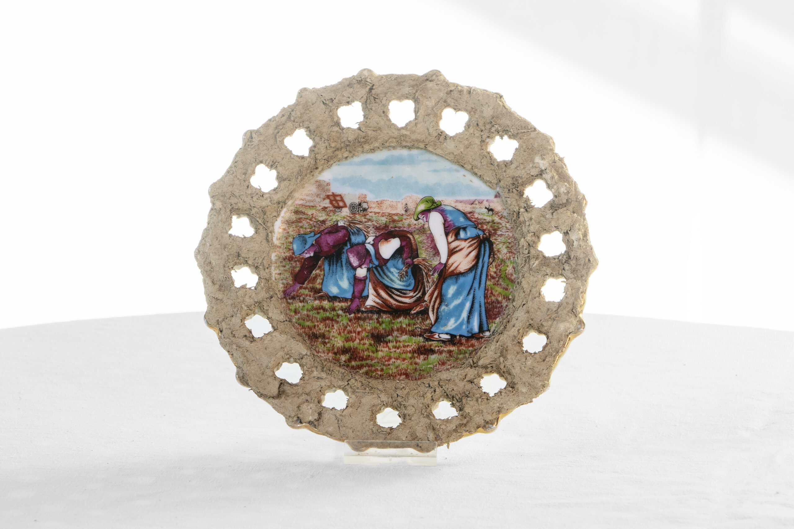 Les Bouseuses sont des assiettes que l’on pourrait aisément imaginer dans l’intérieur d’une maison de campagne. Inspirées des motifs emblématiques de Millet, elles sont rehaussées d’un contour en bouse de vache, revisitant ainsi des images devenues archétypales du monde paysan.
